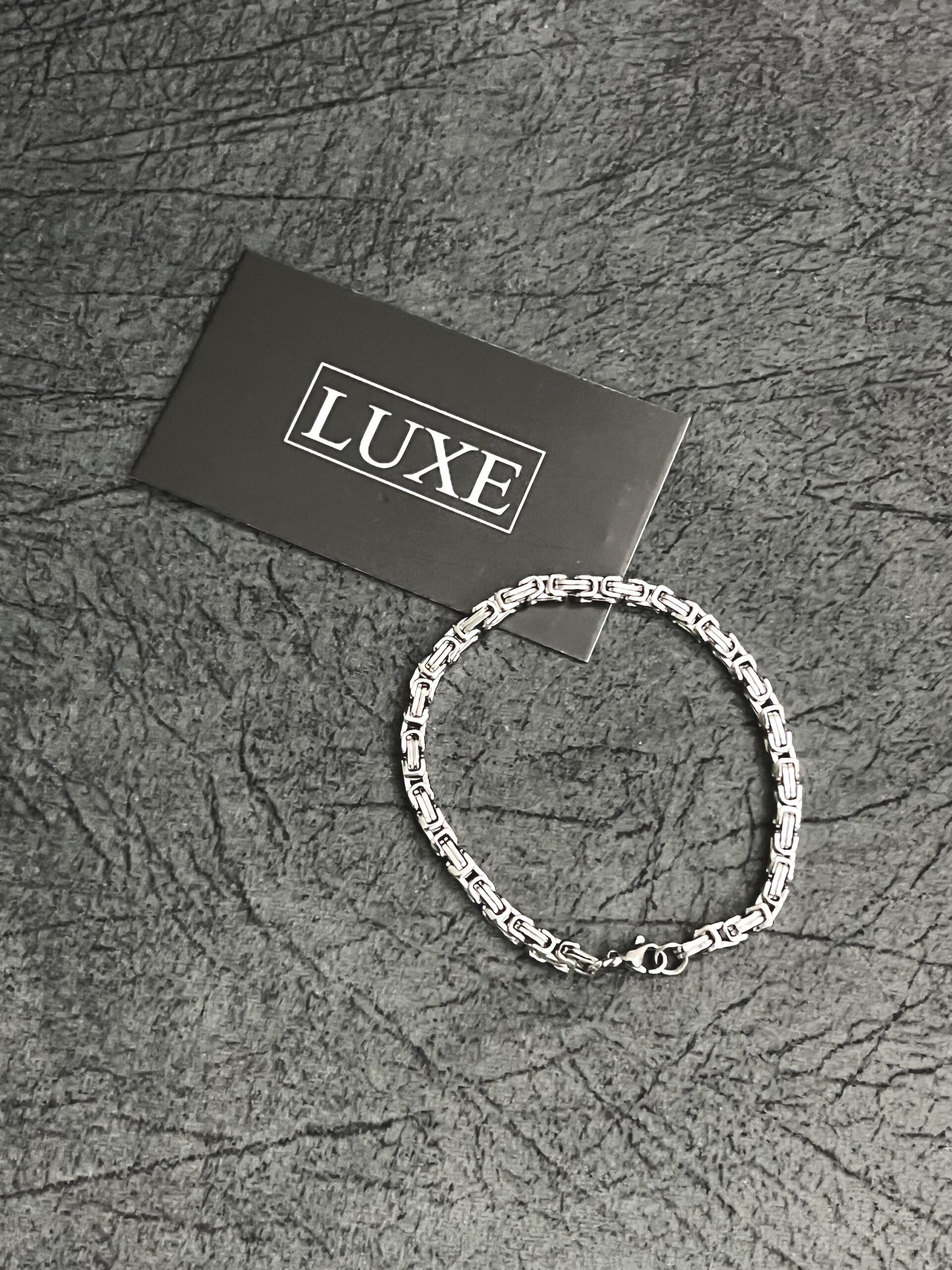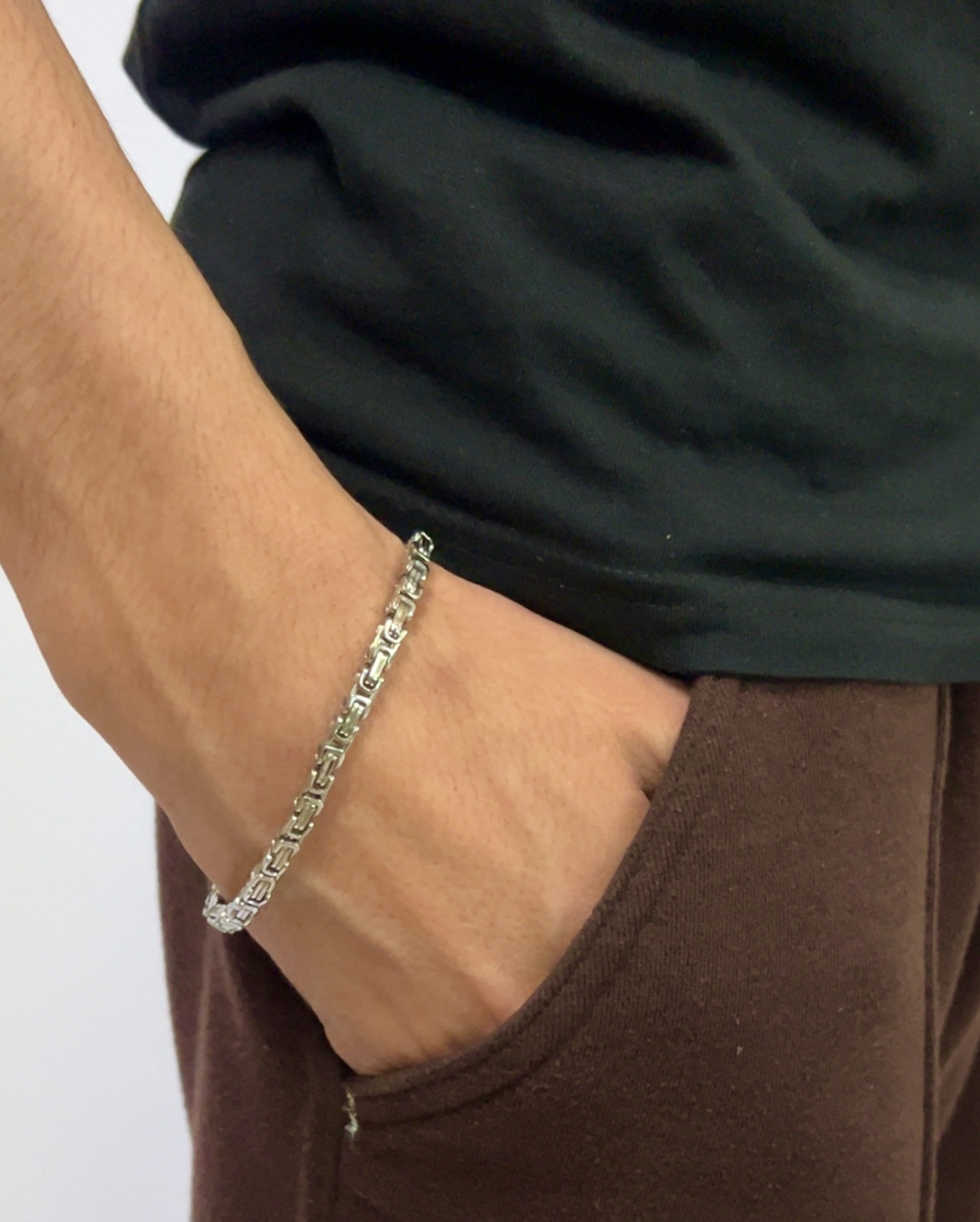 A masterpiece of craftsmanship, this Byzantine bracelet features an intricate, interwoven design that defines true luxury. Made from premium stainless steel, it delivers unmatched durability with a bold, refined shine built to stand out and last forever.