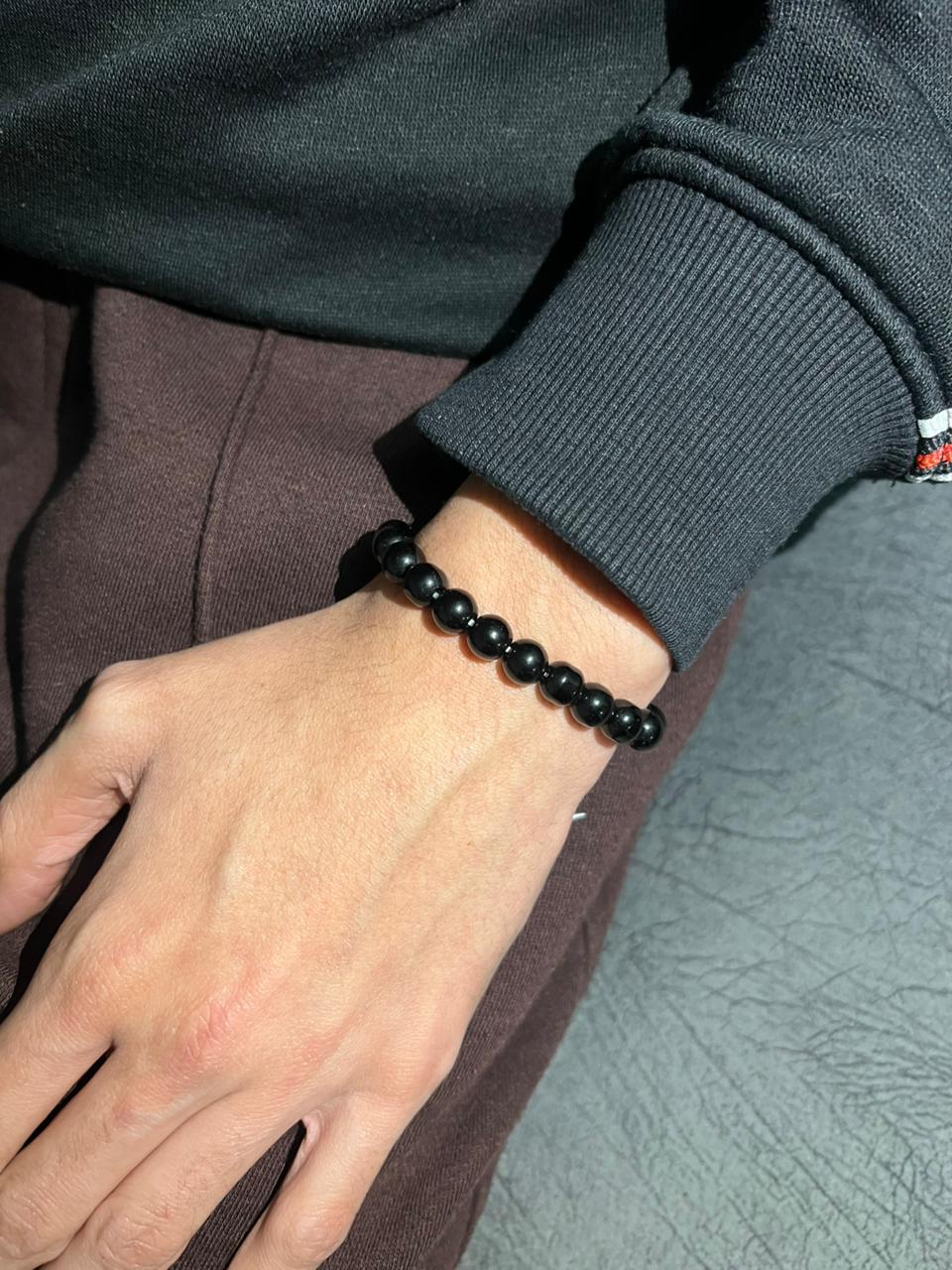 This black glossy beaded bracelet features smooth, high-shine beads strung on a durable elastic fit for everyday comfort. Minimal yet bold, it’s the kind of piece that goes with everything casual fits, night looks, or stacked with your favorites.