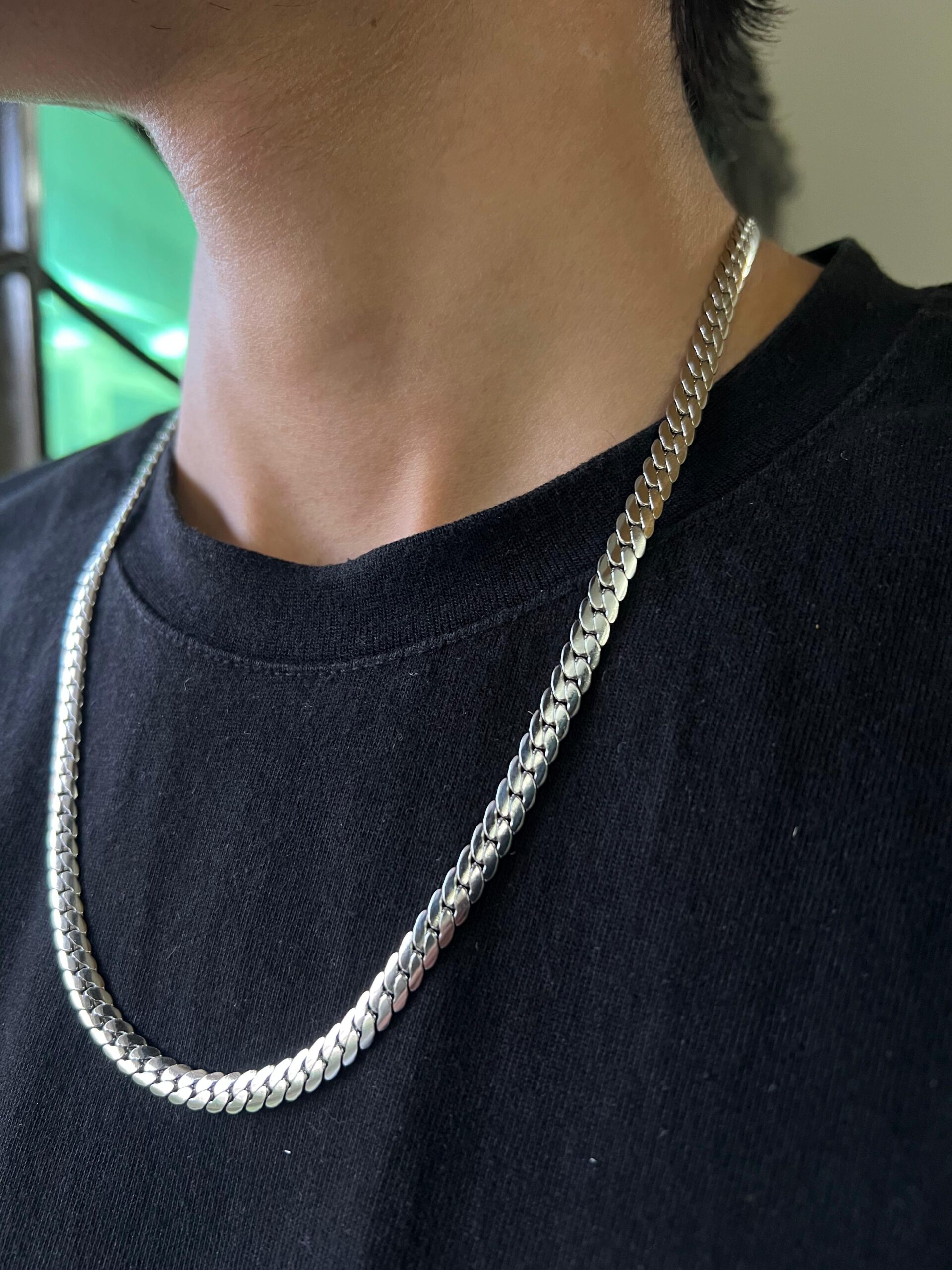 The Curb Slammed Chain takes the classic curb design to the next level with extra-thick, tightly interlocked links that create a bold, chunky look. Crafted for those who want to make a powerful statement, this chain combines rugged durability with urban style. Its heavy, solid feel ensures it stands out whether worn alone or layered.