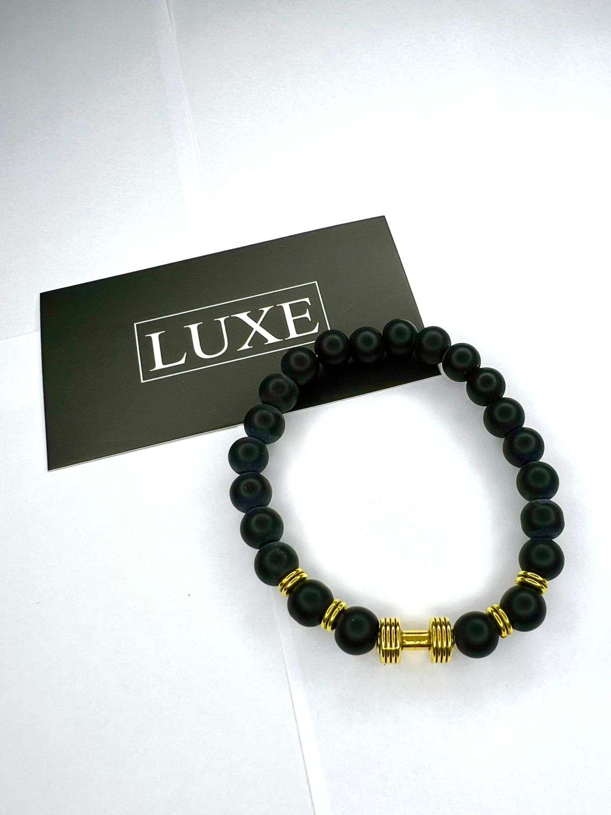 Power meets style in the Dumbbell Beaded Armlet. Featuring a single, striking dumbbell-shaped bead, this piece blends bold symbolism with refined design. Each carefully crafted bead adds texture and sophistication, while the dumbbell represents strength, determination, and dedication. Perfect for the man who values both meaning and style, this armlet adds a touch of Luxe confidence to any look.
