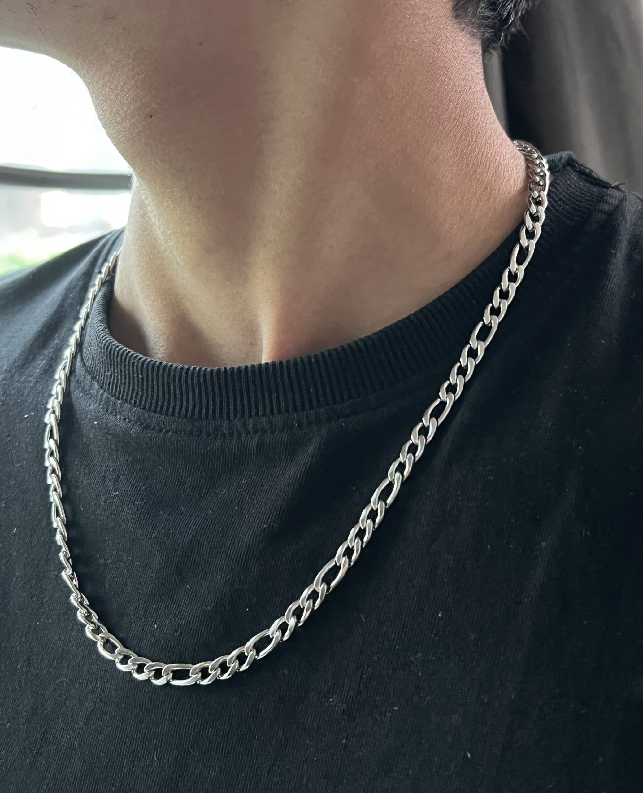 Designed with the classic Figaro pattern of alternating links, this chain blends tradition with modern style. Made from durable stainless steel, it’s resistant to water, sweat, and daily wear while maintaining its shine.