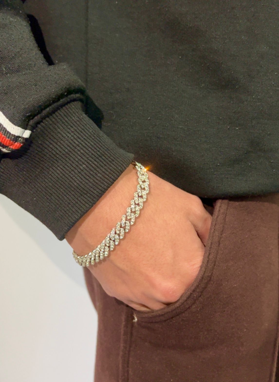 Premium icedout bracelet that hits different. Fully covered in high shine crystal detailing for a nonstop sparkle. Clean, bold, and made to stand out day or night.
